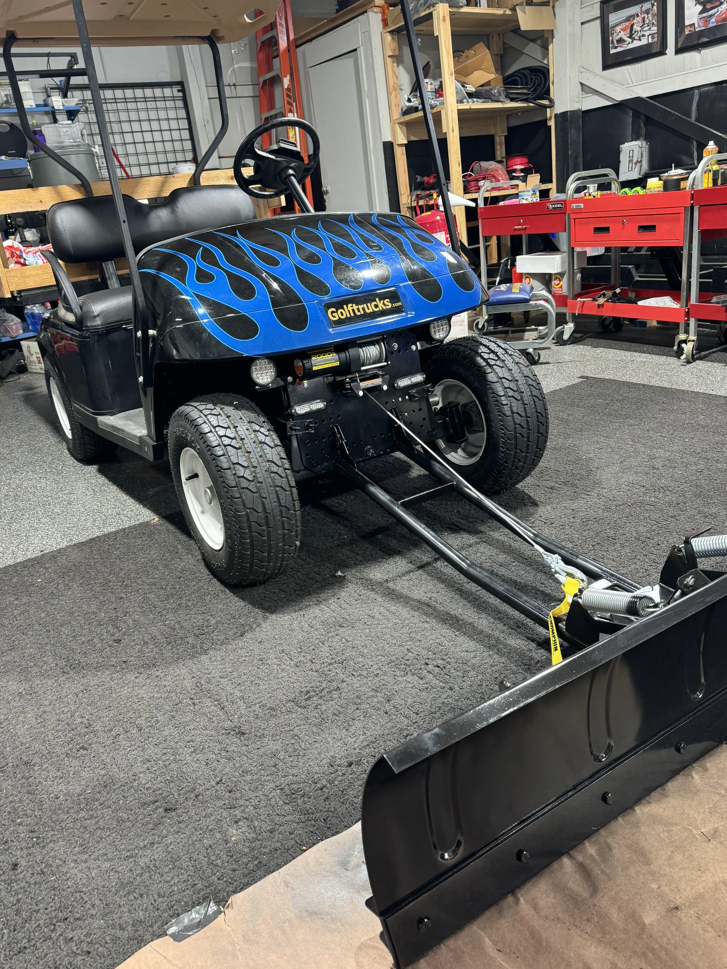 nice custom paint black metal flake with subtle blue flames, new custom seat covers. $9,500.00 Gas with salt spreader and plow.